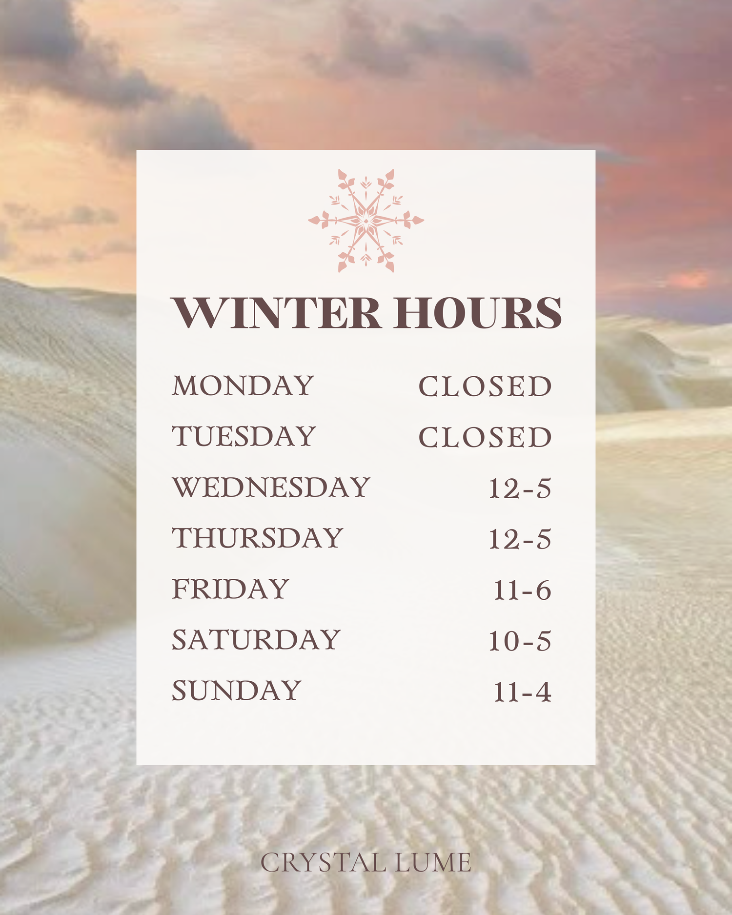 We have now opened the store Wednesday's. Extended hours for the winter!
