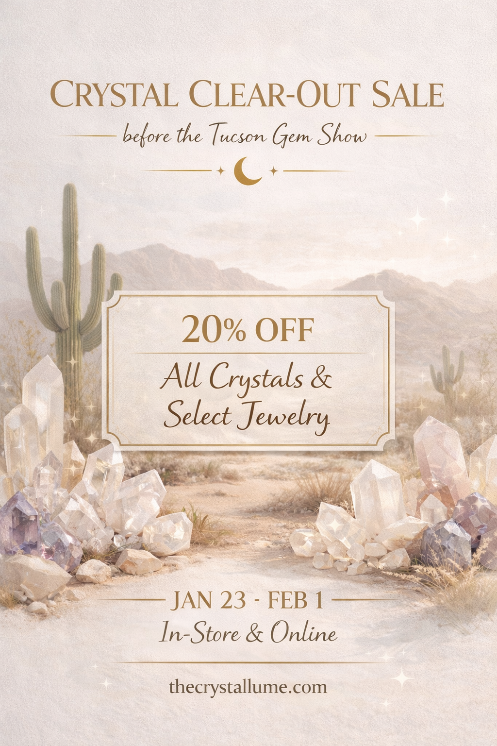20% off All Crystals and Select Jewelry.
