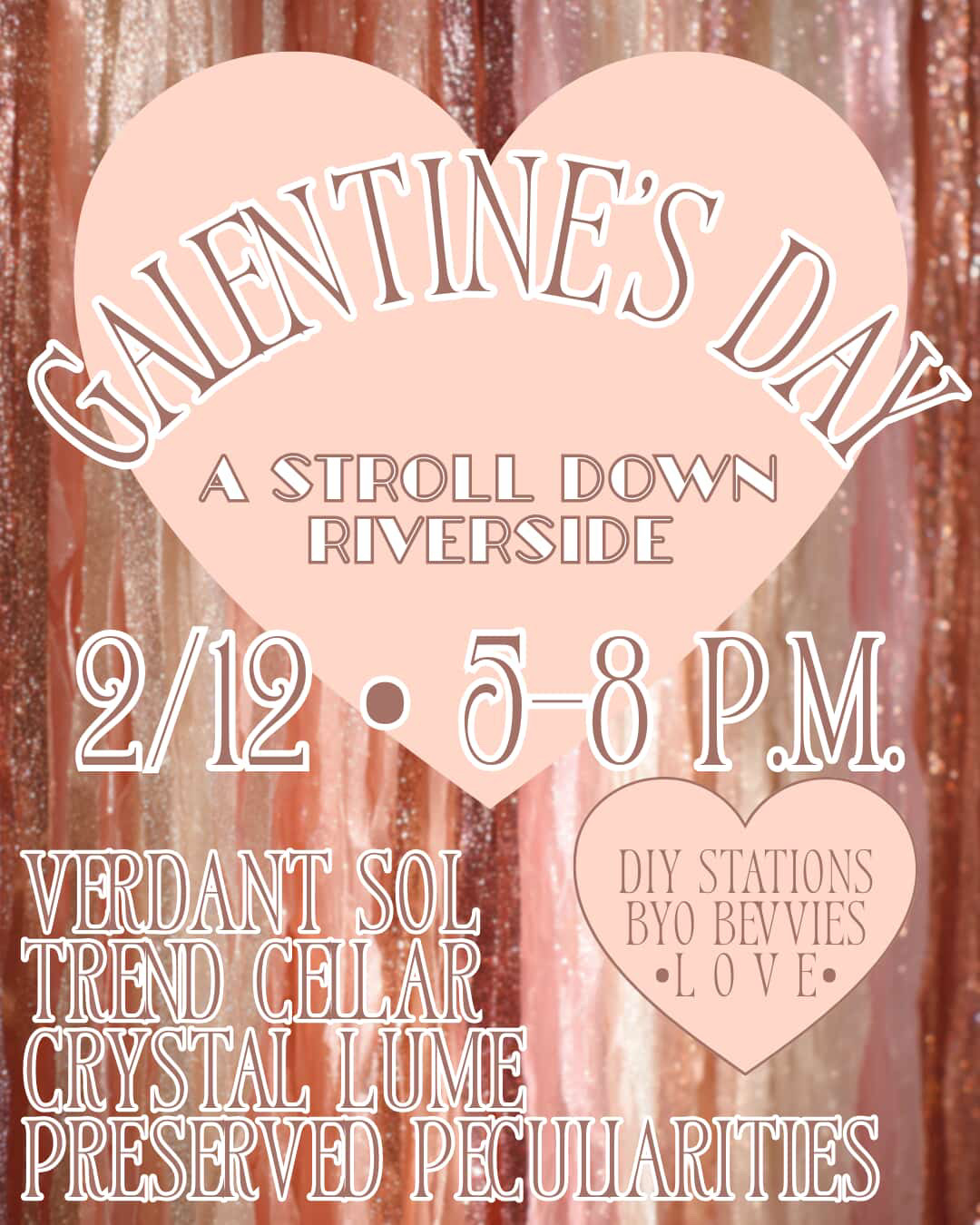 DIY craft stations & bring your own beverage to enjoy with your bestie or lover.