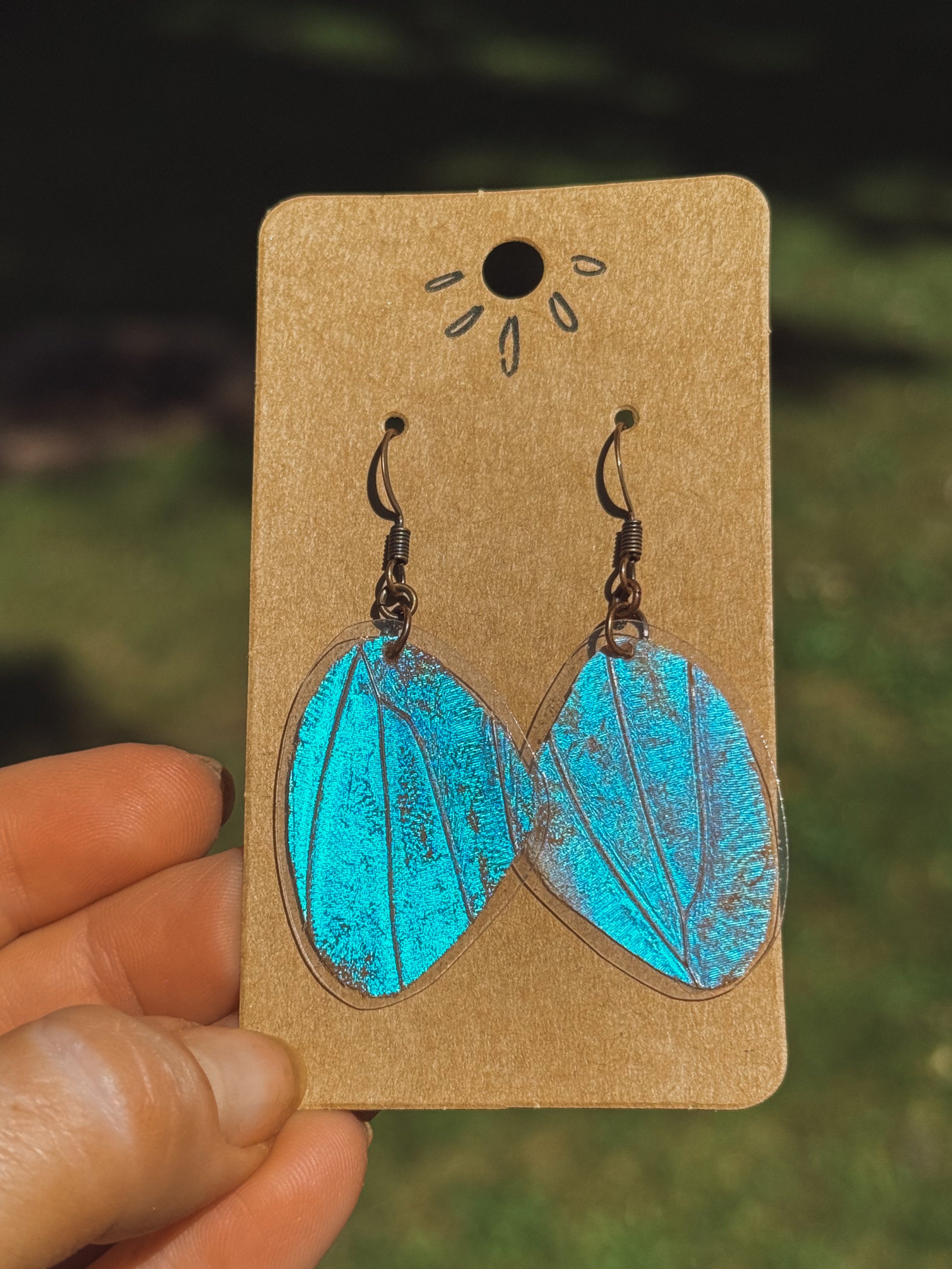 Blue Morpho Butterfly Wing Earrings – Antique Copper Hooks