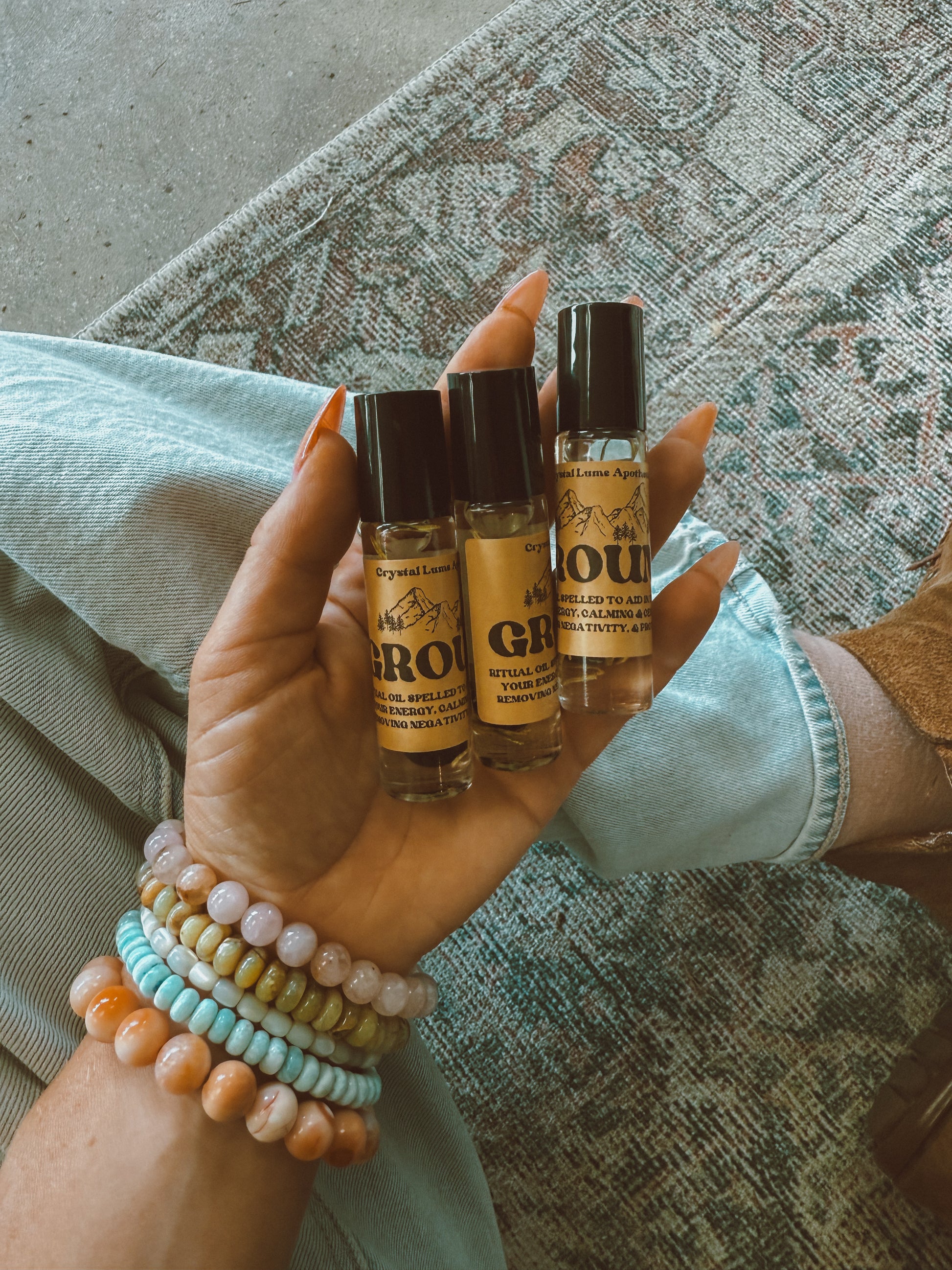 Find your roots and return to presence with Ground Oil, a spellcrafted blend of earthy botanicals designed to clear scattered energy, calm the mind, and restore balance. Each bottle is infused with herbs of intention and a crystal ally to amplify grounding energies, offering gentle protection while removing negativity. Its deeply earthy aroma centers the spirit, making it the perfect companion for meditation, ritual, or everyday moments of stillness.