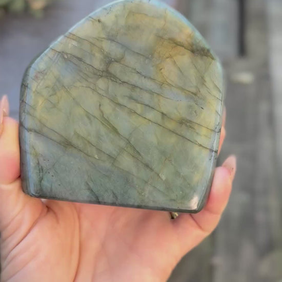 This enchanting Labradorite Freeform shimmers with celestial hues of blue, gold, and green—like holding a piece of the Northern Lights in your hands. Each piece is uniquely polished to reveal the stone’s inner fire (known as labradorescence), creating a mesmerizing dance of light and color. A perfect centerpiece for your altar, meditation space, or home décor, this Labradorite emanates mystery, magic, and transformation.