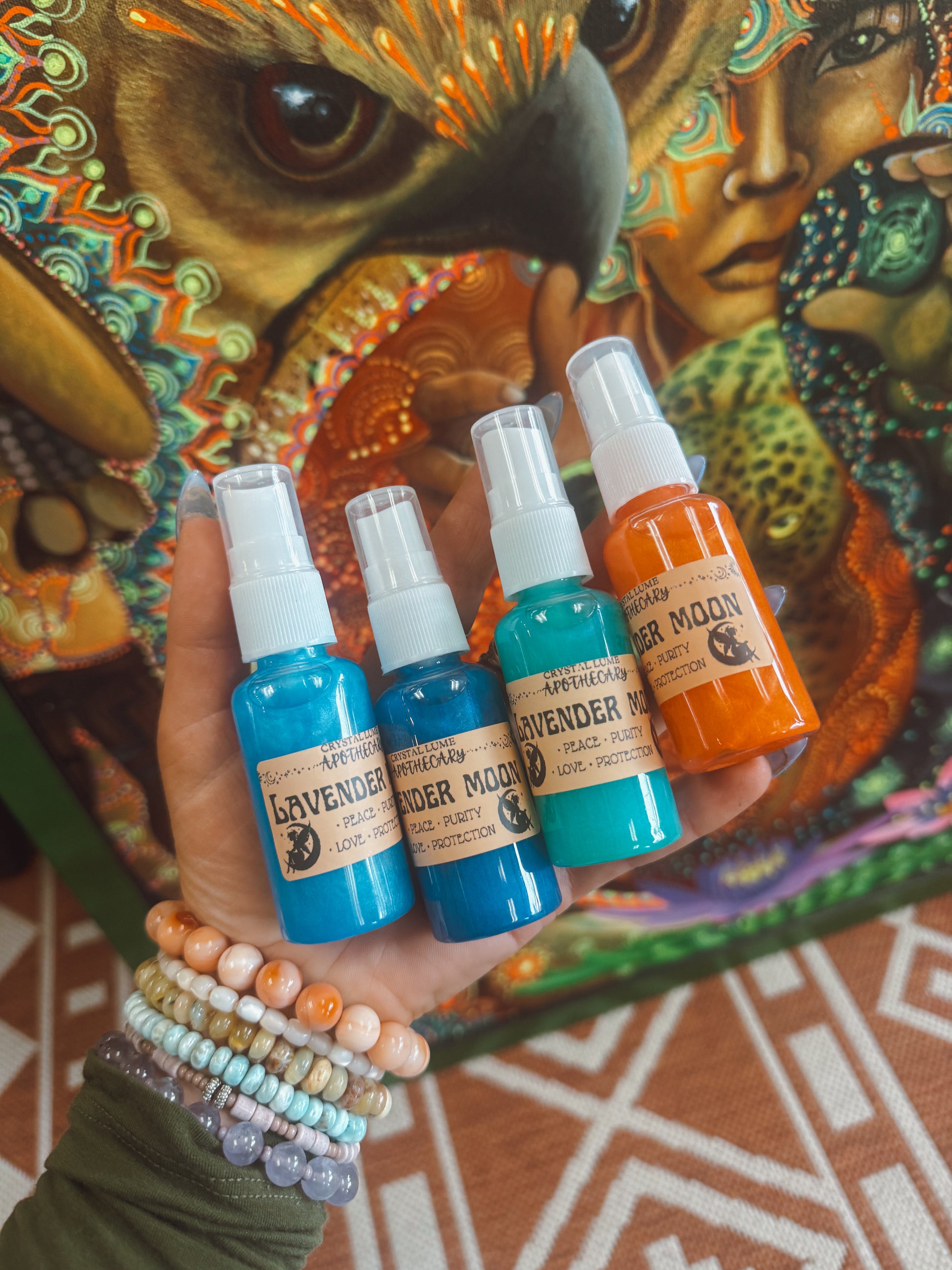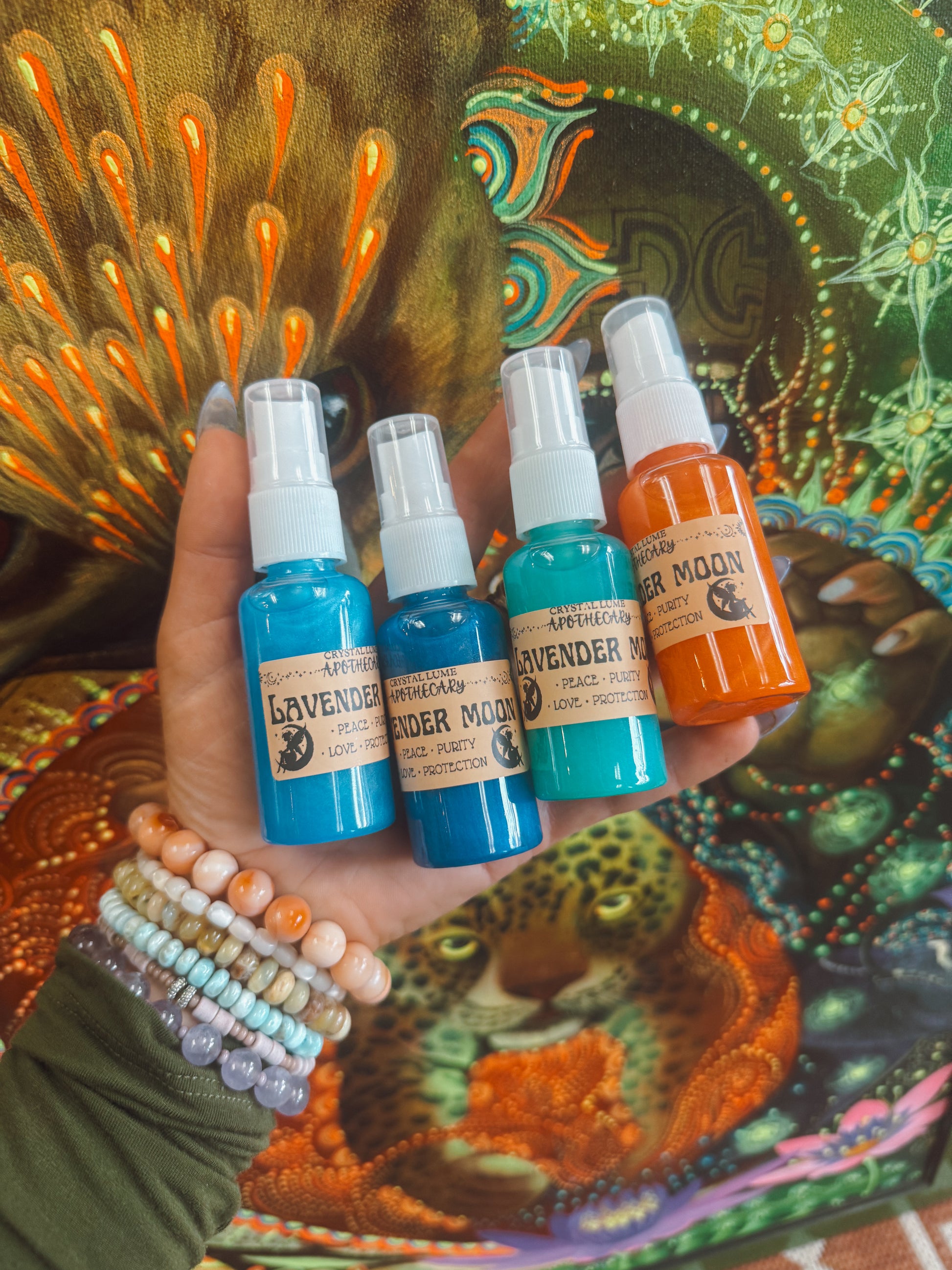 Elevate your spirit and cleanse your energetic field with Lavender Moon, a sacred mist infused with soothing lavender, charged mica crystals, and gentle magic. Crafted in a shimmering 1oz spray, this alchemy mist invites peace, purity, and protection into your daily rituals.