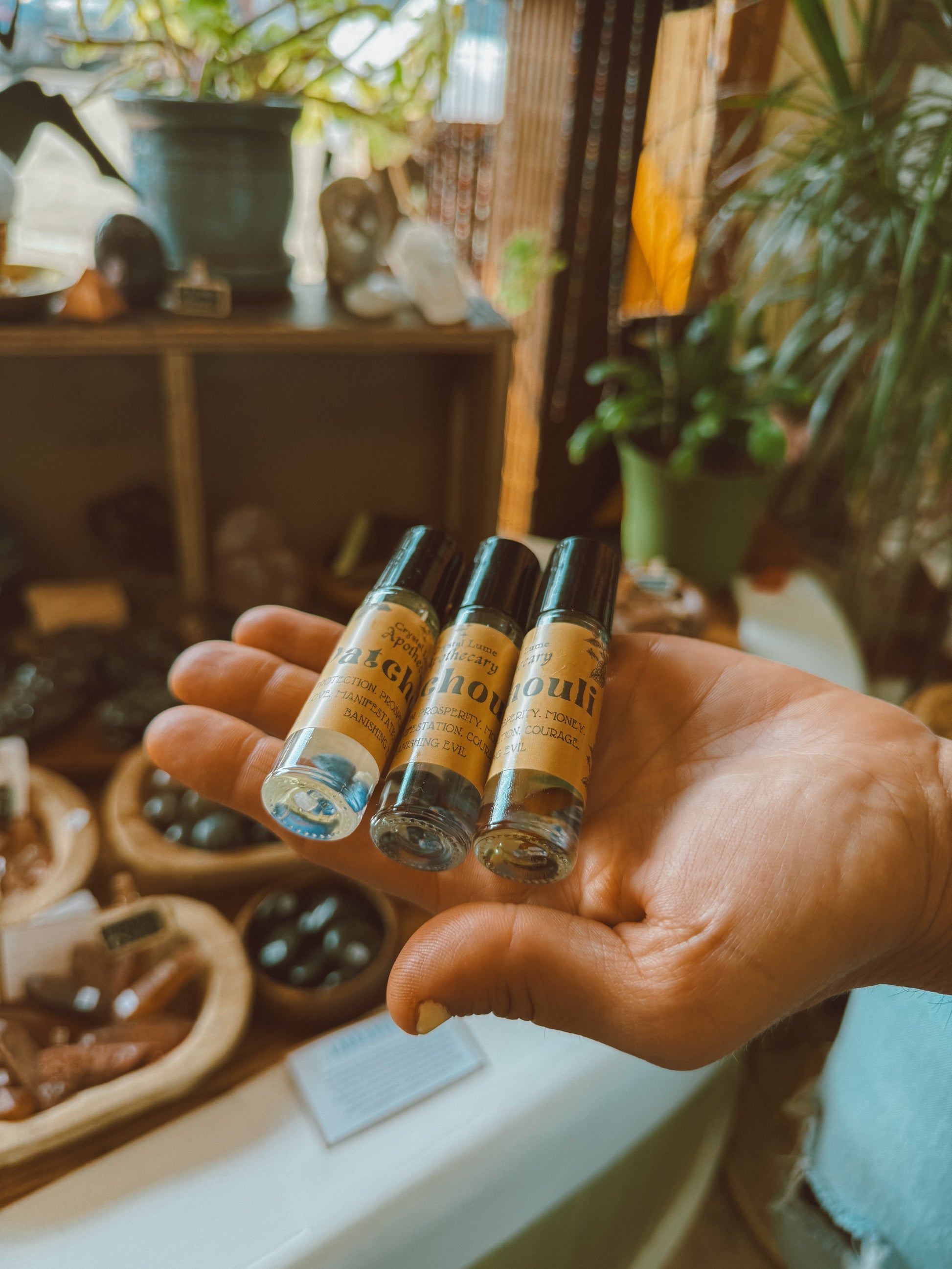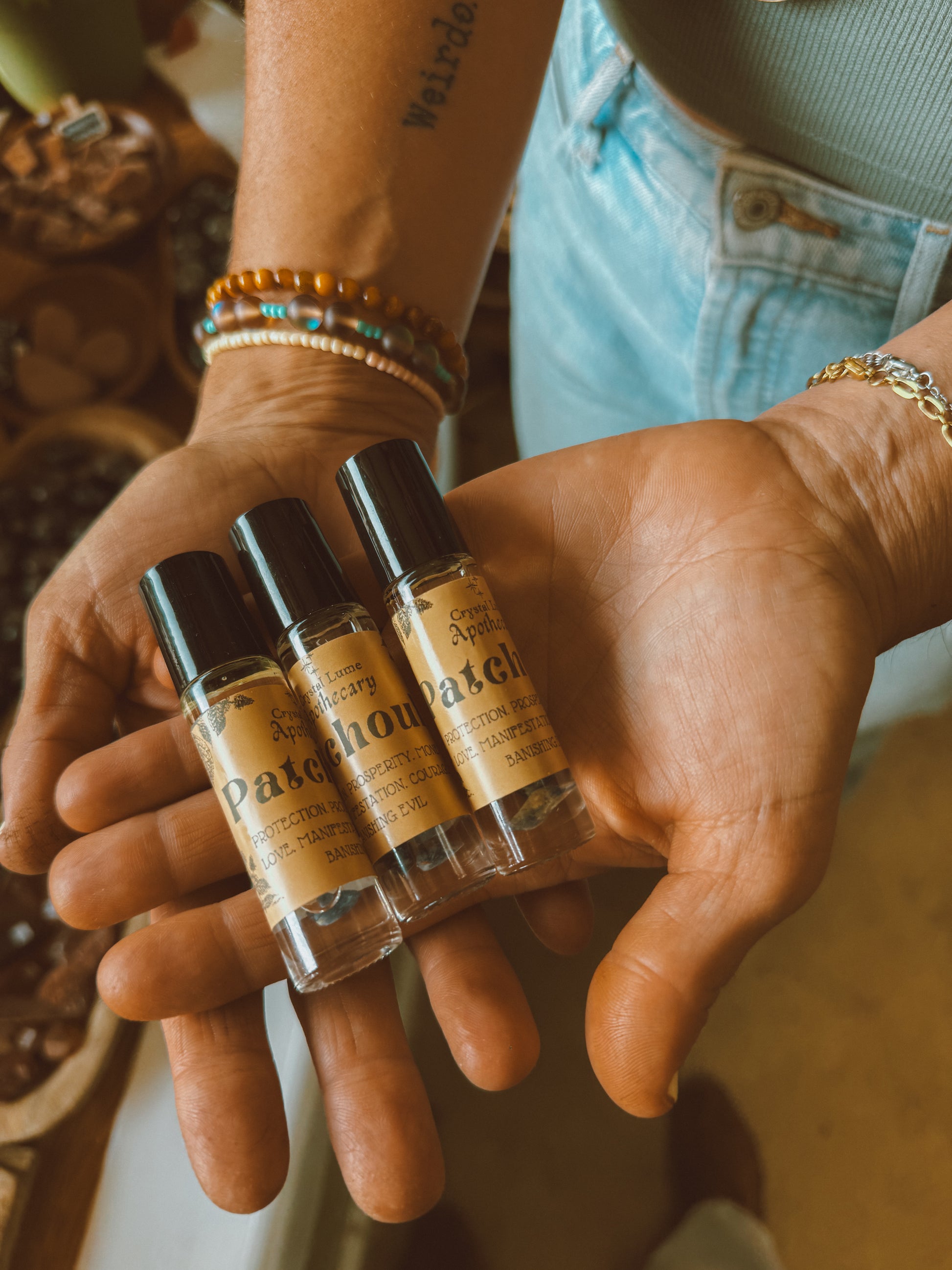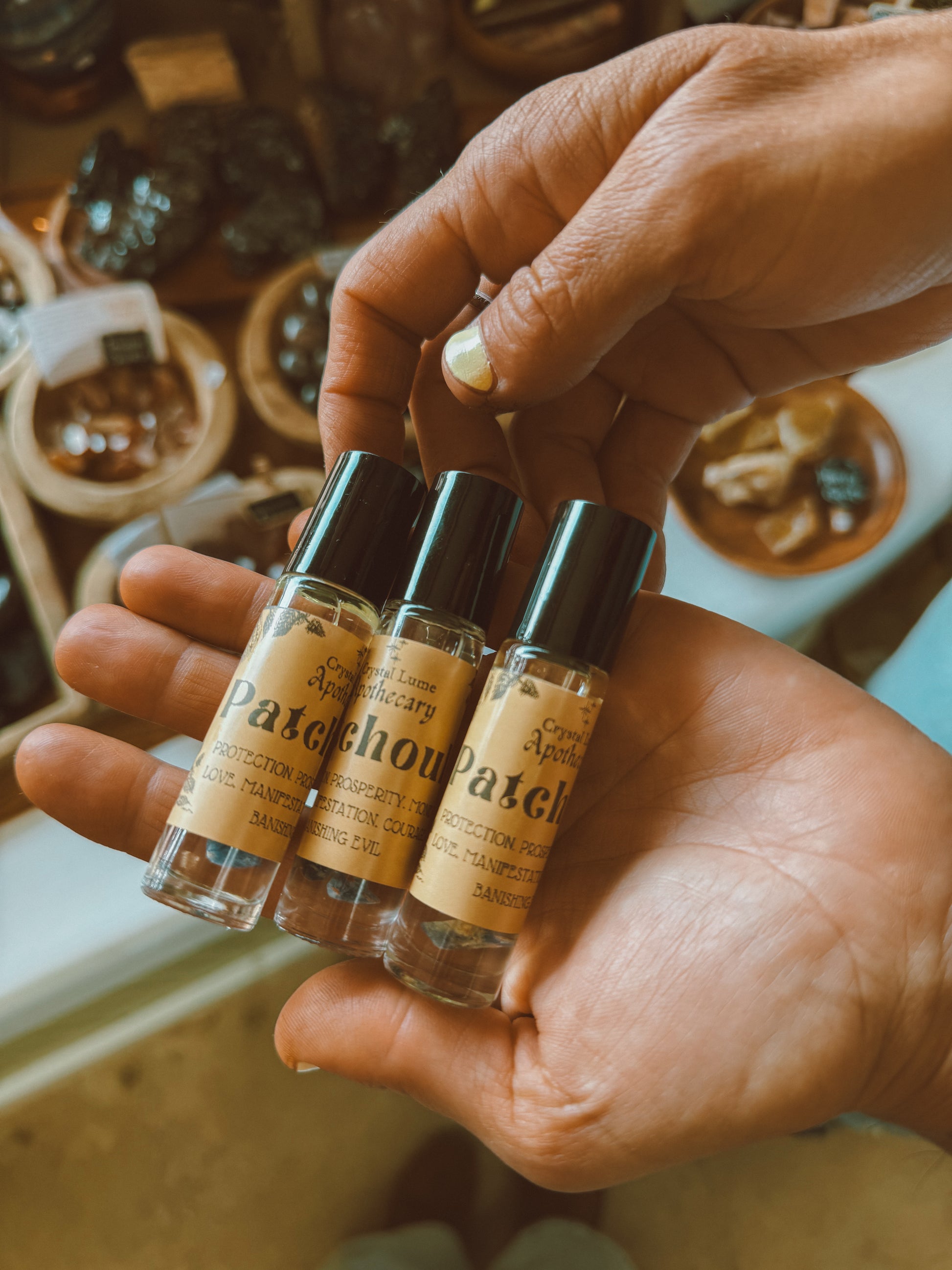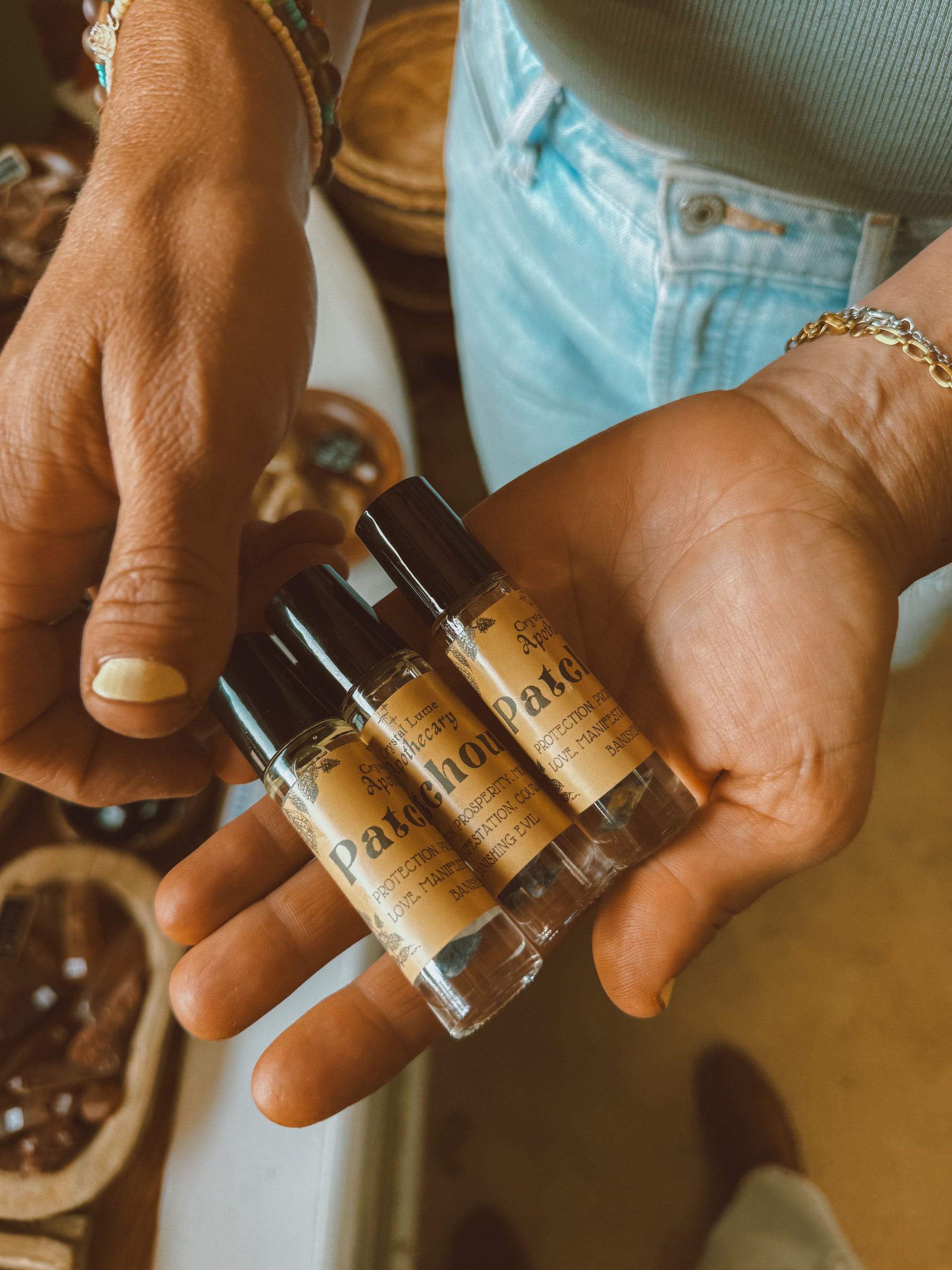 Handcrafted with pure patchouli essential oil, this 10ml ritual roller is a sacred companion for everyday wear, helping you embody your intentions and move through the world rooted in magic.