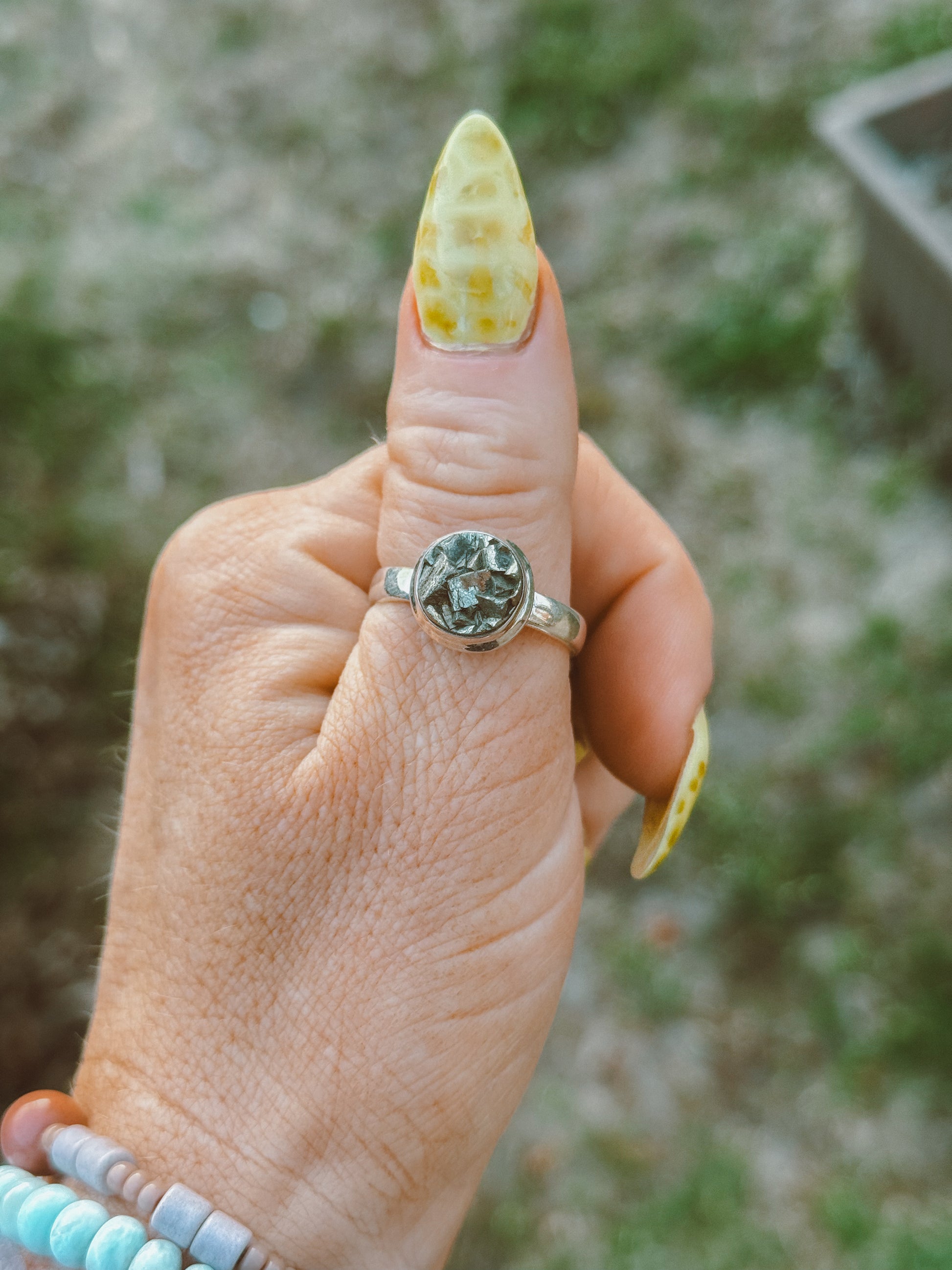 A bold statement of strength and radiant confidence, this raw Pyrite cluster ring embodies both power and protection. Set in solid sterling silver, the natural Pyrite sparkles like ancient treasure—earth-born and fiercely grounding.