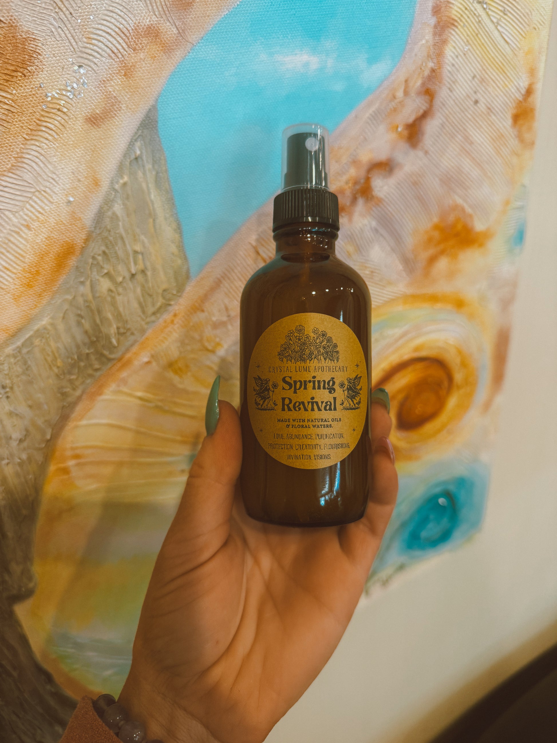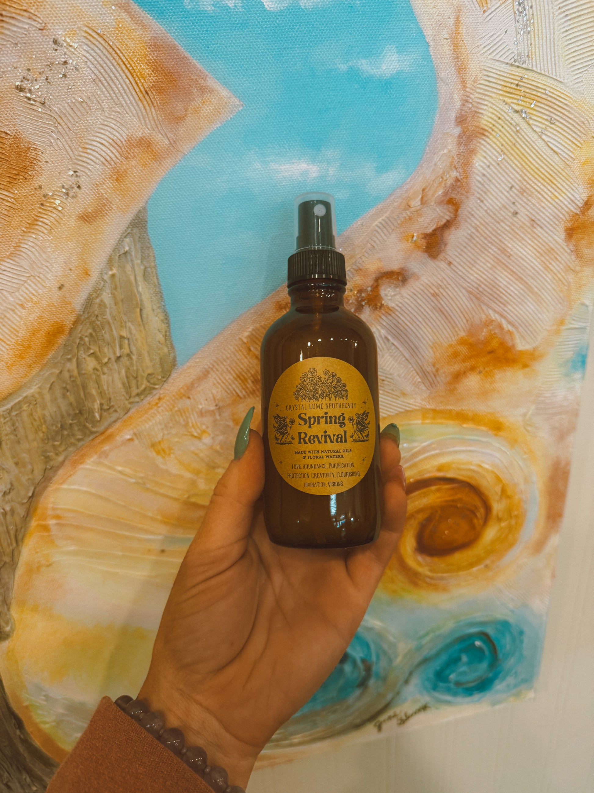 A refreshing botanical mist designed to awaken your senses and invite joyful renewal. Spring Revival blends uplifting floral and grounding herbal essences into a gentle spray that enhances your natural glow and personal magic. Crafted for daily use on skin, hair, or as a room and linen mist, this alchemy mist clears stagnant energy and fills your space with fresh inspiration and radiant warmth.