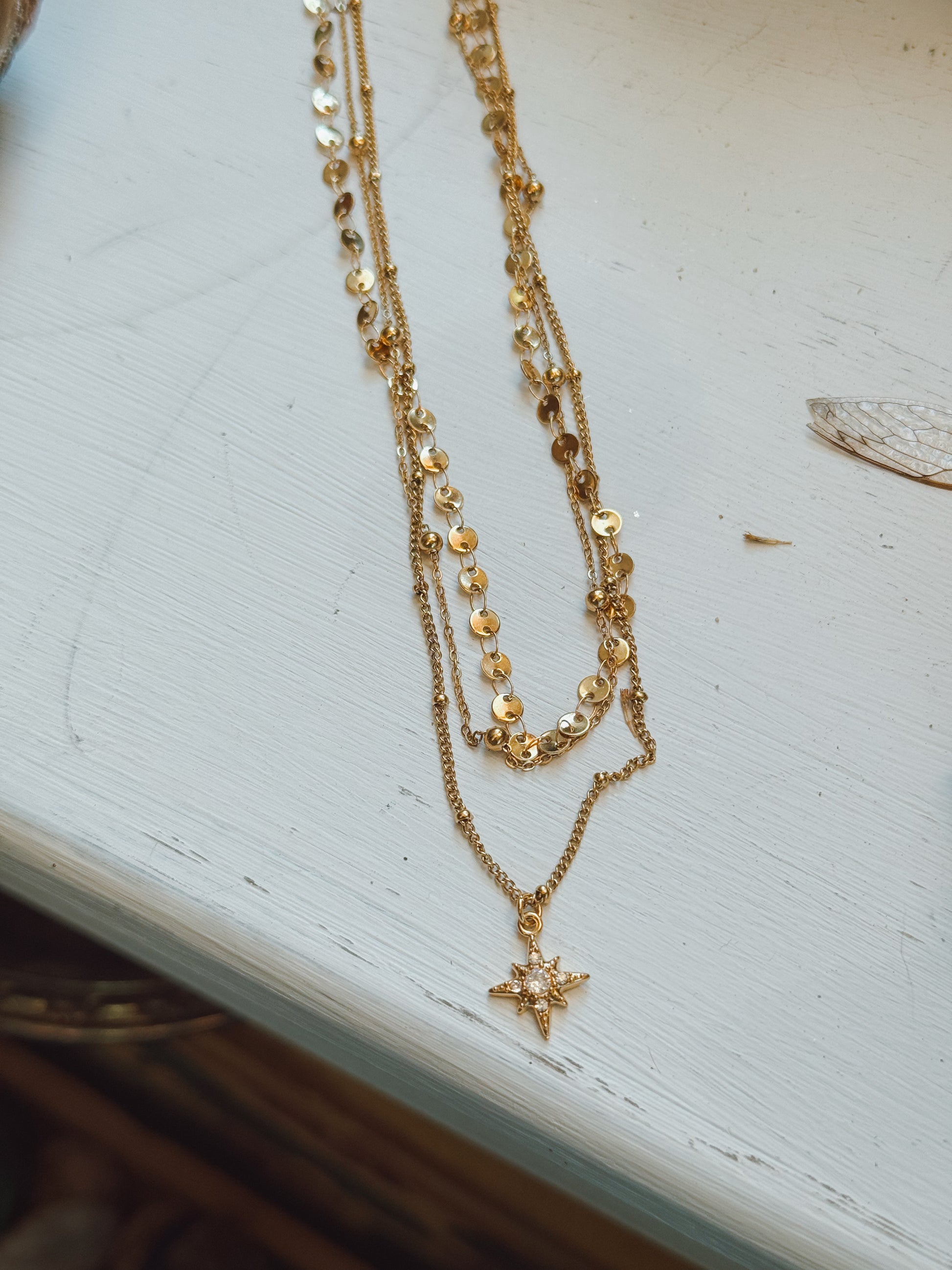 Radiate golden light with this elegant Triple Gold Plated Chain Layered Necklace — a timeless statement of beauty and strength. Crafted from 18k gold plated stainless steel, this layered piece shimmers with warmth and grace, perfectly balancing simplicity and sophistication. Designed for effortless layering or to be worn alone as a radiant centerpiece, it embodies the essence of modern faerie magic — bold, feminine, and endlessly luminous.