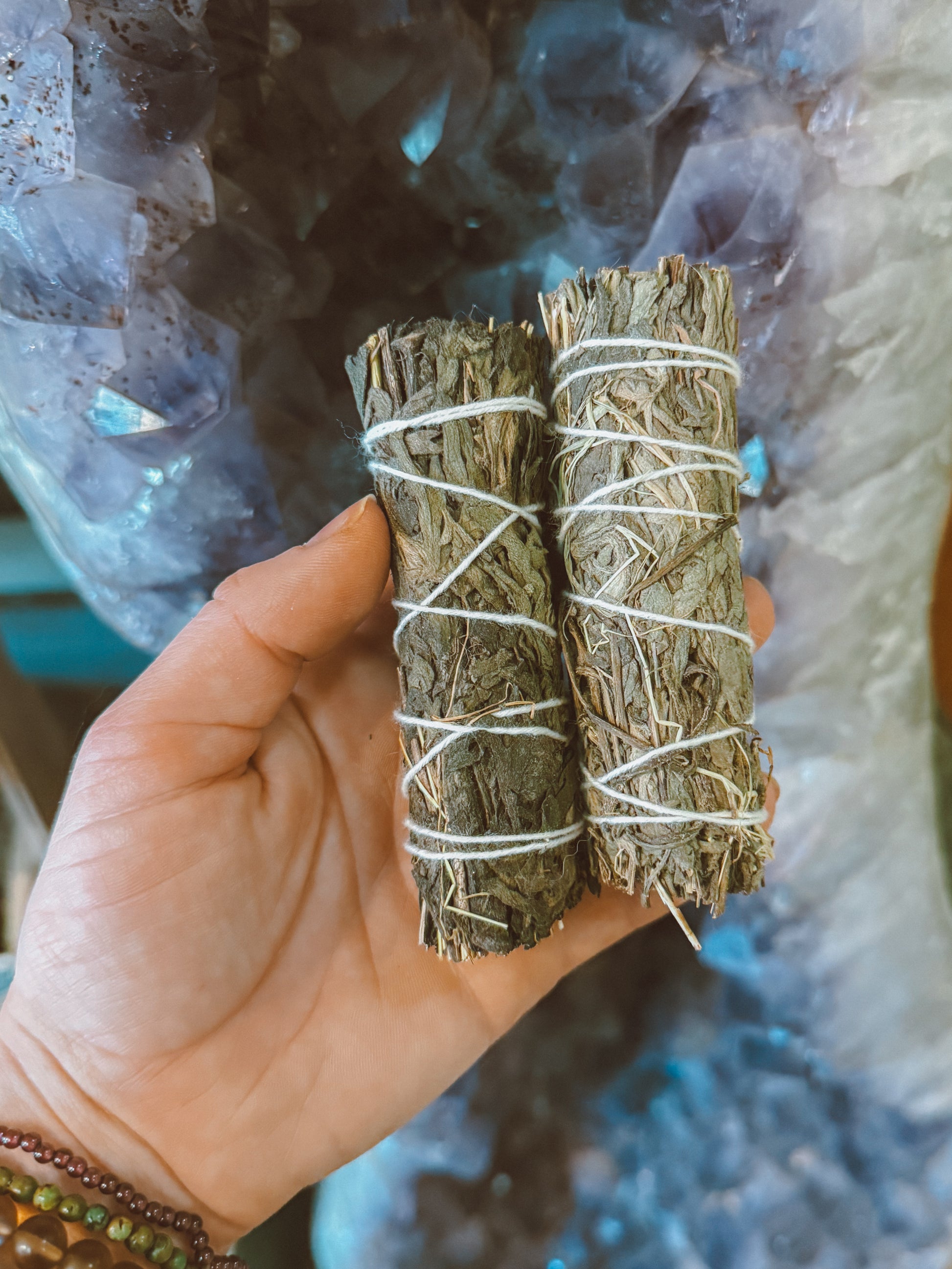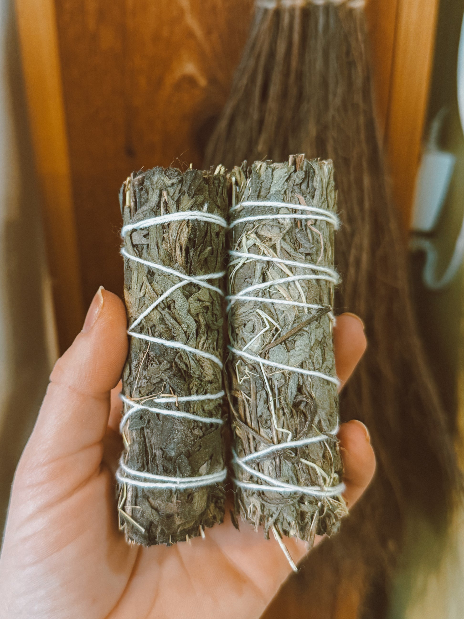 Includes: One hand-harvested Mugwort Smudge Bundle, tied with reverence and wrapped with love.