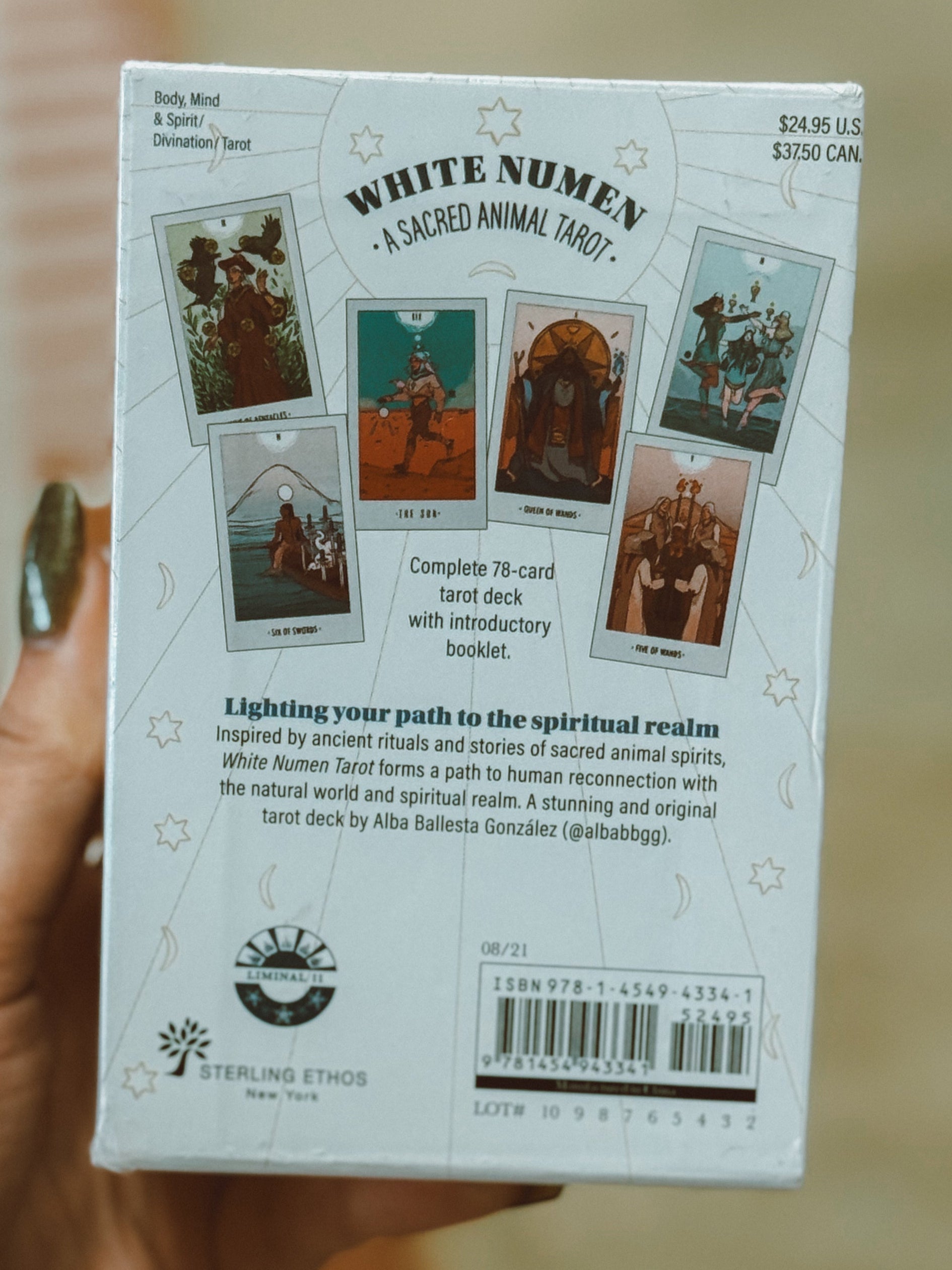 White Numen: A Sacred Animal Tarot is a luminous 78-card deck illustrated by Alba Ballesta González. Rooted in myth, ritual, and sacred animal spirits, this deck weaves traditional Rider-Waite archetypes with the presence of “Numen”—divine animal guides representing courage, protection, and spiritual connection. The artwork blends ethereal fantasy and expressive symbolism, inviting readers into a world where nature, magic, and the human spirit converge.